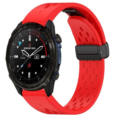 Correa de Silicona para Garmin Descent Mk3I Mk3 51mm 26mm con Hebilla Plegable Magnética (Rojo)