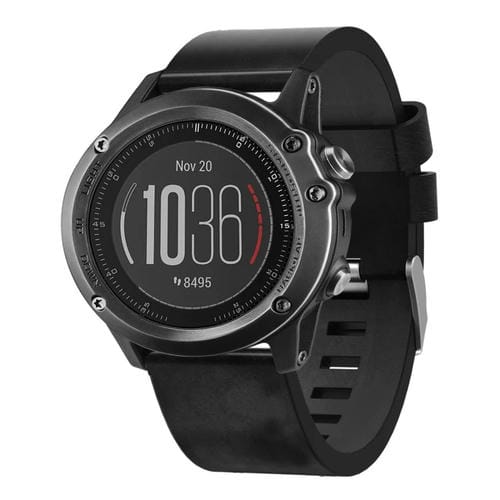 Correa de Reloj para Garmin Fenix 3 Hr 26mm con hebilla de acero y cuero (Negro)