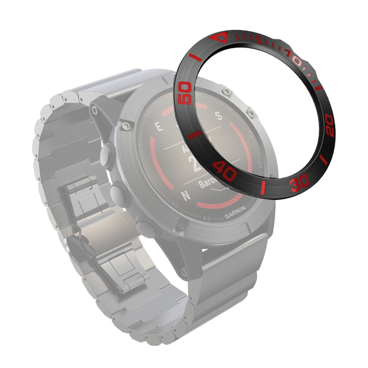 Anillo de Bisel Steel para Garmin Fenix 5X y 5X Plus Smart Watch (Negro con Letra Roja)