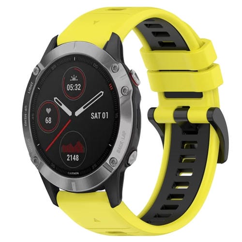 Correa de Silicona 22mm para Garmin Fenix 6 GPS Sports (Amarillo + Negro)