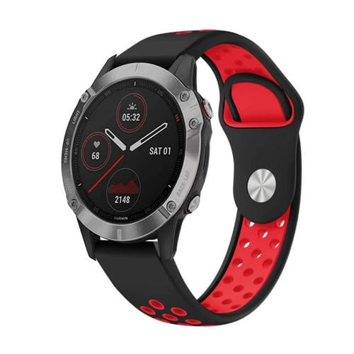 Banda de Reloj Garmin Fenix 6 GPS 22mm Silicona Transpirable (Negro + Rojo)