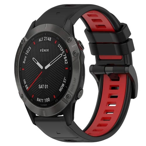 Correa para Garmin Fenix 6 Pro GPS 22mm Silicona Deportiva Bicolor (Negro + Rojo)