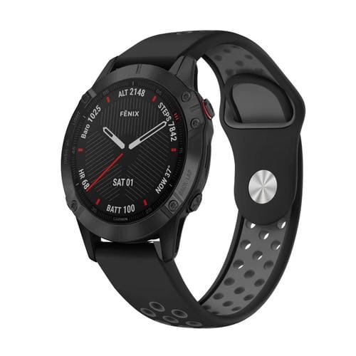 Banda de Reloj Silicona para Garmin Fenix 6 Sapphire GPS 22mm Sports (Negro + Gris)