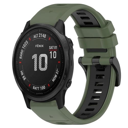 Correa para Garmin Fenix 6S 20mm Sports silicona bicolor (Verde Oliva + Negro)
