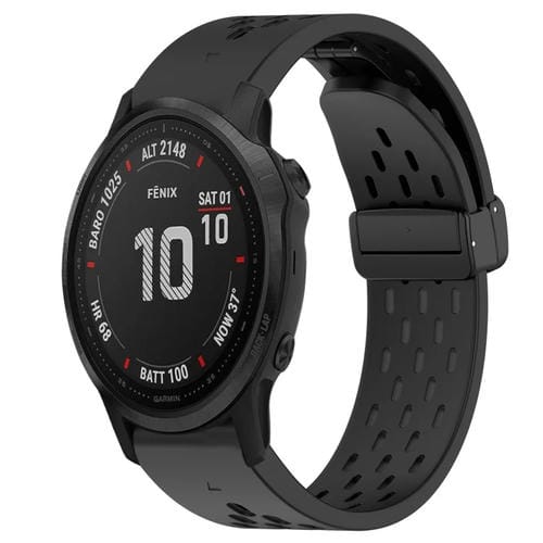 Correa de Silicona para Garmin Fenix 6S con Orificio y Hebilla Plegable de 20mm (Negro)