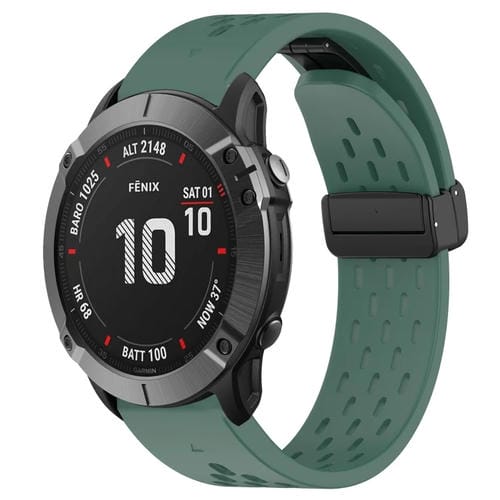 For Garmin Fenix ​​6X Pro Silicone Watch Band with Hole and 26mm Folding Buckle (Dark Green)