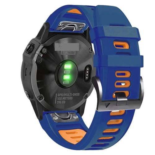 For Garmin Fenix ​​7 22mm Silicone Sports Band Two Colors (Midnight Blue+Orange)
