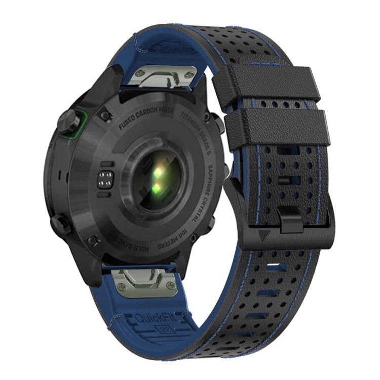Correa de Reloj para Garmin Fenix 7 de Cuero y Silicona con Orificio de Punto 22mm (Negro Azul)