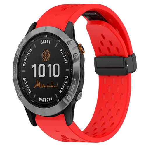 Correa de Reloj Silicona Garmin Fenix 7 con Orificio y Hebilla Plegable 22mm (Rojo)