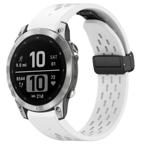Correa de Silicona para Garmin Fenix 7 y Fenix 7 Pro con Hebilla Plegable Magnética y Orificios de 22mm (Blanco)