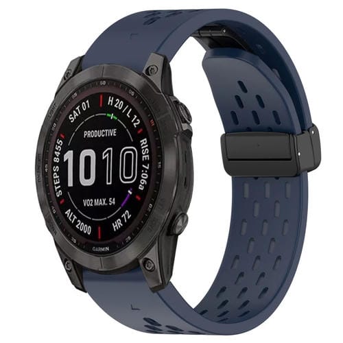 Correa de Silicona para Garmin Fenix 7S Sapphire Solar con Orificio y Hebilla Plegable 20mm (Azul Medianoche)