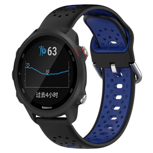 Banda de Reloj para Garmin Forerunner 245 Music 20mm Silicona Dos Colores Transpirable (Negro + Azul)