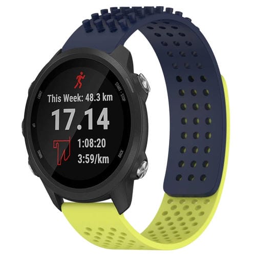 Correa de Silicona para Garmin Forerunner 245 Music con Puntos 3D Transpirables y Orificios 20mm (Azul Medianoche + Verde Lima)