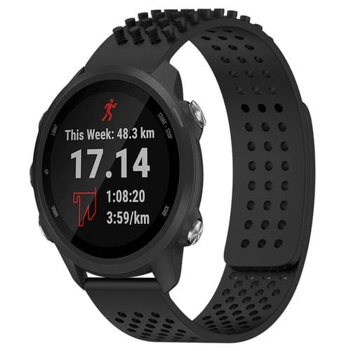 Correa de Silicona para Garmin Forerunner 245 Music con Puntos 3D Transpirables y Orificios de 20mm (Negro)