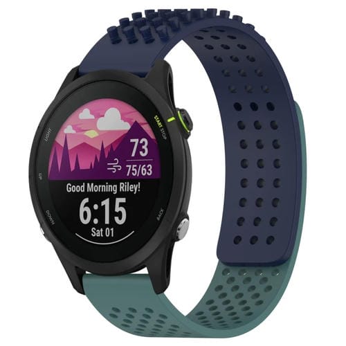 Correa de Silicona para Garmin Forerunner 255 con Puntos 3D Transpirables y Orificios de 22mm (Azul Medianoche + Verde Oliva)
