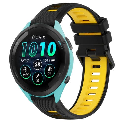 Correa deportiva silicona para Garmin Forerunner 265 22mm (Negro + Amarillo)