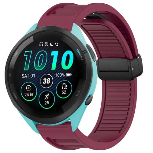 Correa de Reloj para Garmin Forerunner 265 Music de Silicona con Hebilla Magnética Plegable de 22mm (Rojo Vino)