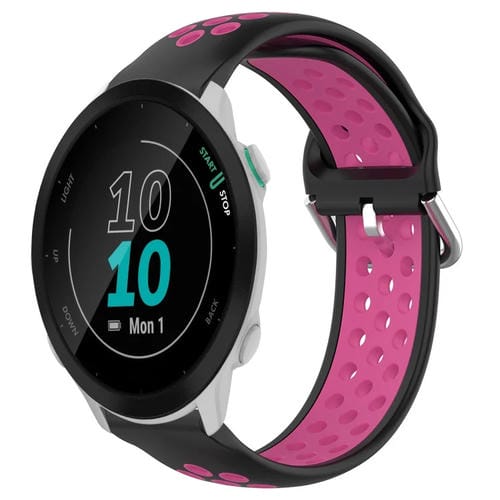 Correa de Reloj 20mm Garmin Forerunner 55 Silicona Deportiva Perforada (Negro + Rojo Rosa)