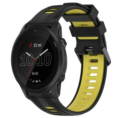 Banda de Reloj de Silicona para Garmin Forerunner 945 Sports (Negro + Amarillo)