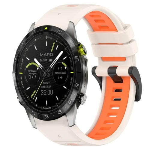 Correa de Silicona para Garmin Marq Athlete Gen 2 22mm Sports Dos Colores (Starlight + Orange)