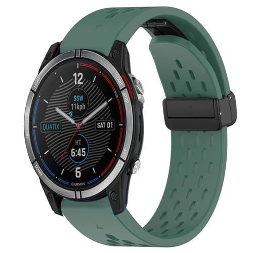 For Garmin Quatix 7 Silicone Watch Band with Hole and 22mm Folding Buckle (Dark Green)