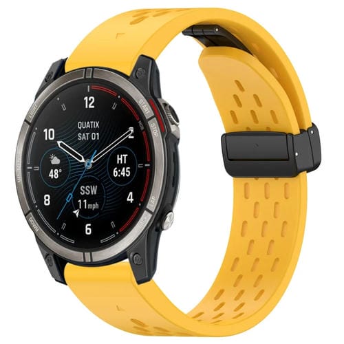 Correa de Reloj Silicona Garmin Quatix 7 Pro con Hebilla Plegable Magnética y Orificios 22mm (Amarillo)