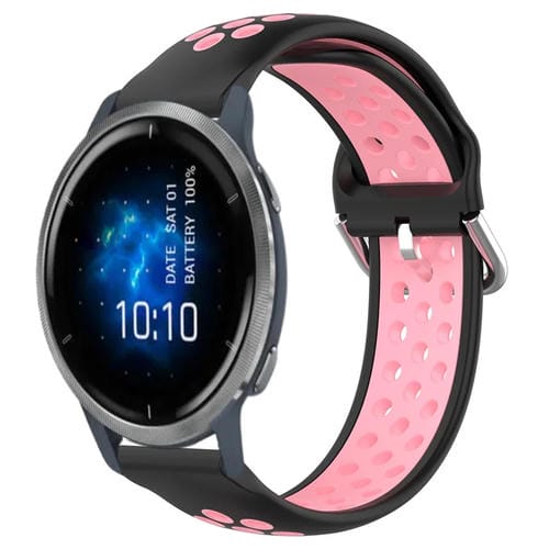 Correa para Garmin Venu 2 22mm Silicona Deportiva Transpirable Perforada (Negro + Rosa)