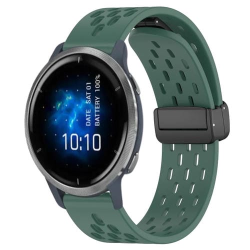 Correa de Reloj para Garmin Venu 2 de Silicona con Cierre Magnético Plegable 22mm (Verde Oscuro)