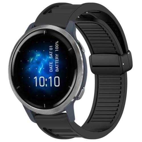 Correa de Silicona para Garmin Venu 2 con Hebilla Magnética Plegable 22mm (Negro)