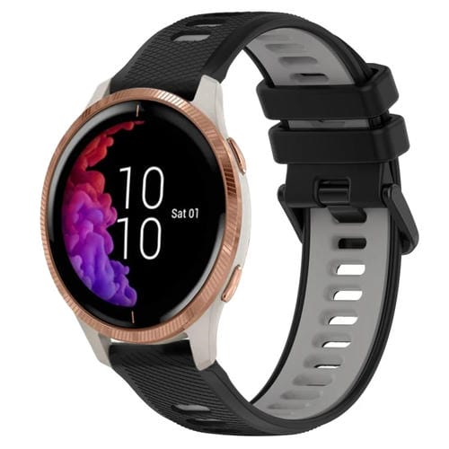 Correa silicona deportiva para Garmin Venu 20mm dos colores (Negro + Gris)