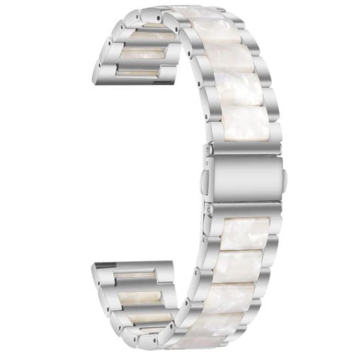 Correa para Garmin Venu Vivoactive 3 Música 20mm Acero Inoxidable y Resina (Plata + Blanca Perla)