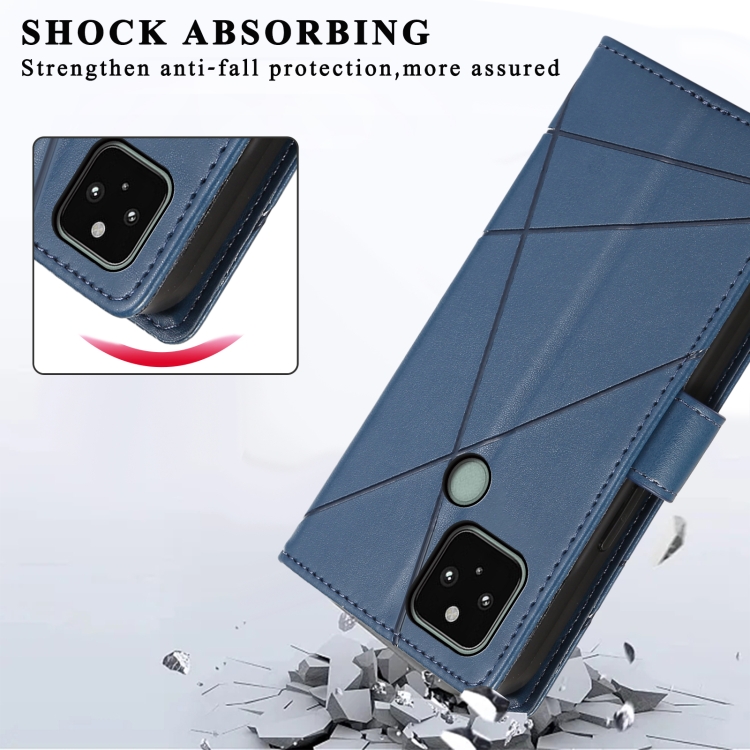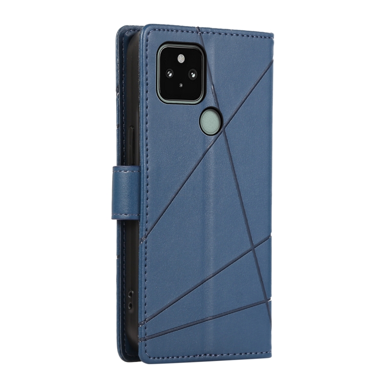 Funda para Teléfono Google Pixel 5 PU con Línea en Relieve y Textura de Cuero Genuino (Azul)
