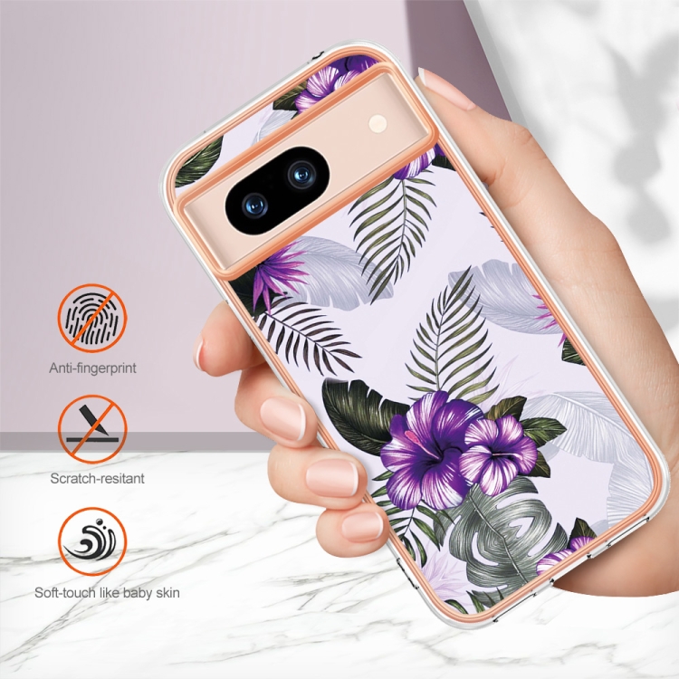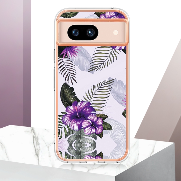 Funda para Google Pixel 8A Imd TPU con Galvanoplastia Flor Púrpura