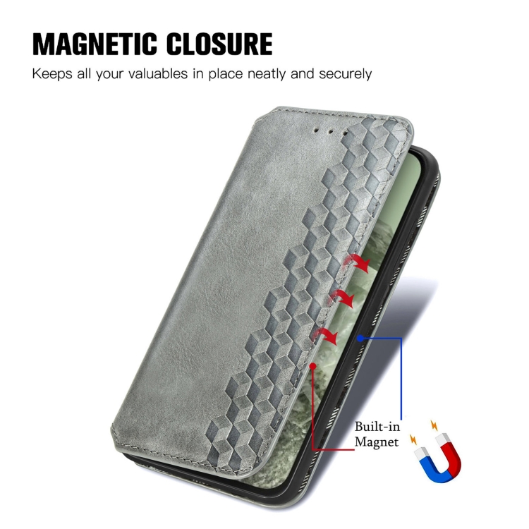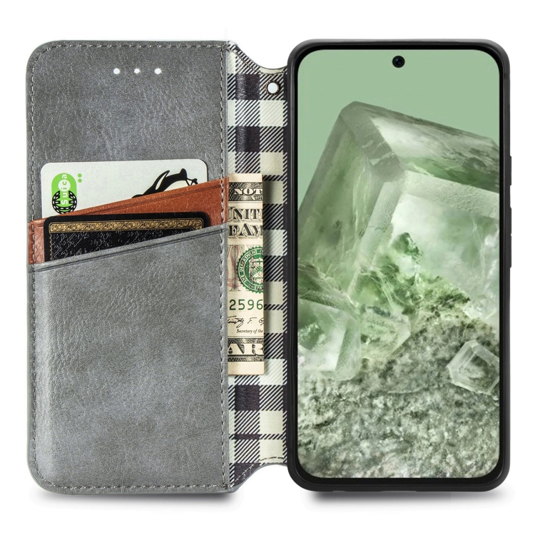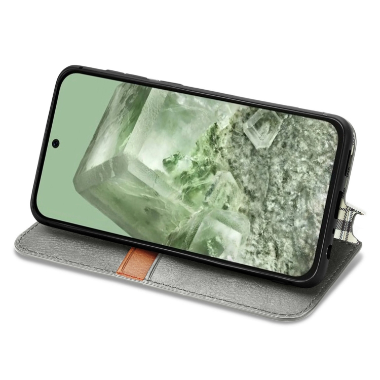 Funda de Cuero Magnético Prensado para Google Pixel 8A Cubic Grid (Gris)