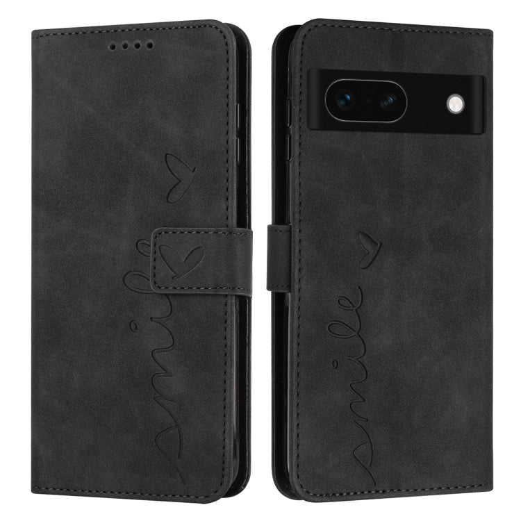 Funda para Google Pixel 8A Skin Feel Heart de Cuero en Relieve con Cordón Largo (Negro)