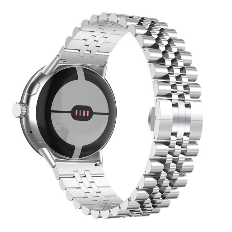 Correa de Reloj Metal Acero Inoxidable para Google Pixel Watch 2 con Siete Cuentas (Plateado)