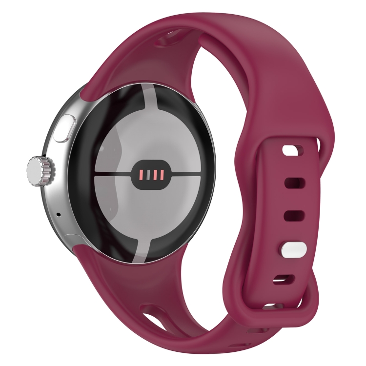 Banda de Silicona sólida para Google Pixel Watch con botón de mariposa y diseño gota de agua (Rojo Vino)