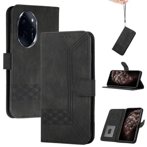 Funda de Cuero con Tapa para Honor 100 Pro Cubic Skin Feel (Negro)