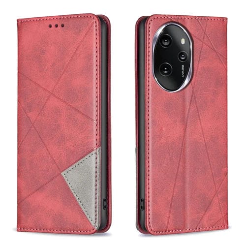 Funda de Cuero Magnético para Honor 100 Pro con Textura Rombo (Rojo)