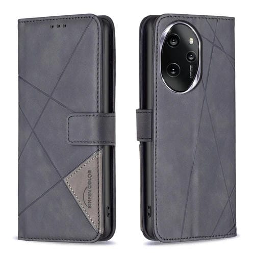 Funda para Honor 100 Pro de Cuero con Textura de Rombo y Hebilla Magnética (Negro)