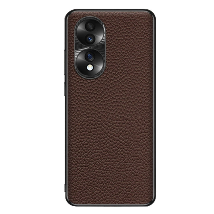 Funda para Honor 70 con Textura Litchi de Cuero Genuino (Café)