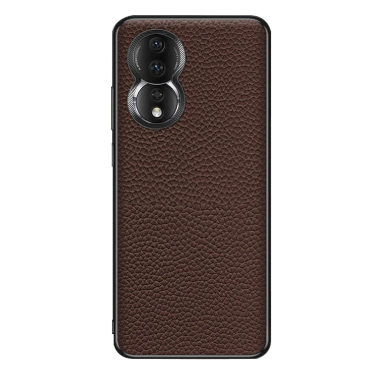 Funda para Teléfono Honor 80 Cuero Genuino Textura Litchi (Café)
