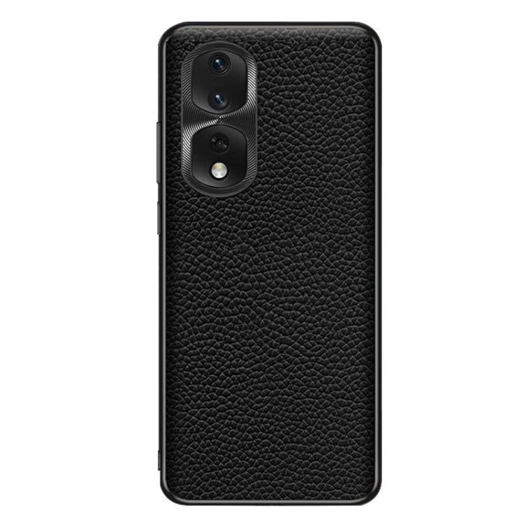 Funda de Teléfono Honor 80 Pro Textura Litchi Cuero Genuino (Negro)