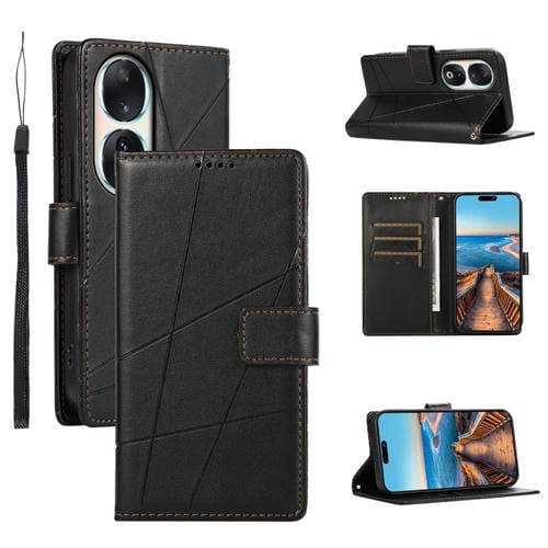 Funda para Honor 90 con Línea en Relieve y Textura de Cuero Genuino PU (Negro)