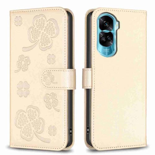 Funda para Honor 90 Lite X50I de Cuero con Relieve de Cuatro Hojas (Dorado)