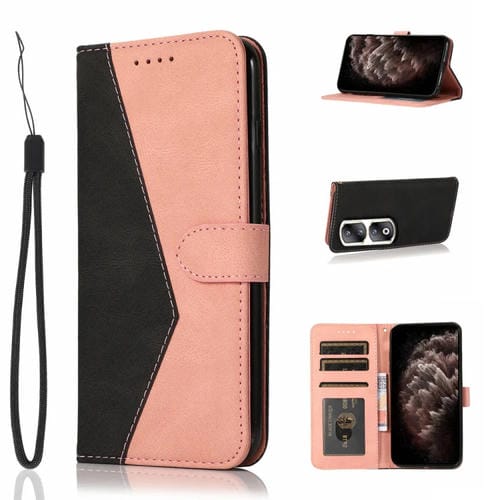 Funda de Cuero para Honor 90 Pro con Costuras de Dos Colores (Negro, Oro Rosa)