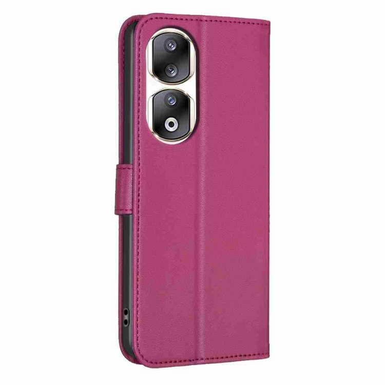 Funda de Cuero para Honor 90 Pro con Relieve de Cuatro Hojas (Rojo Rosa)