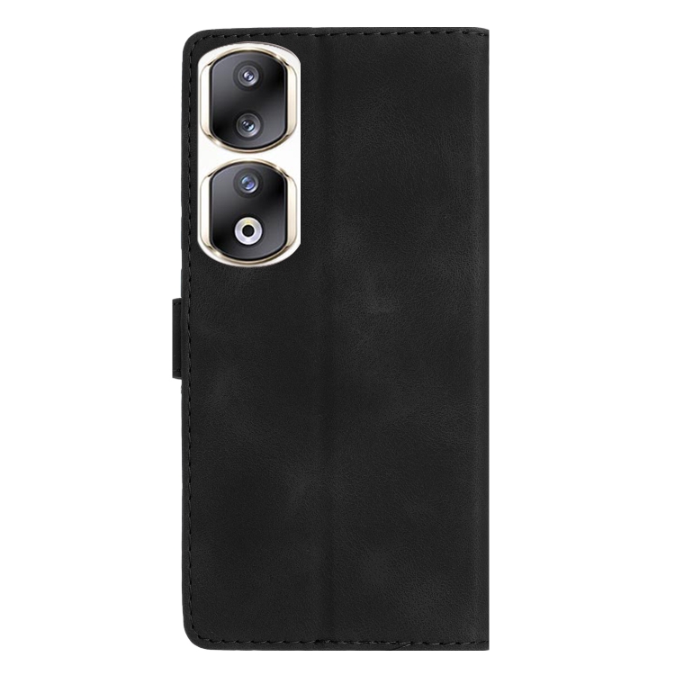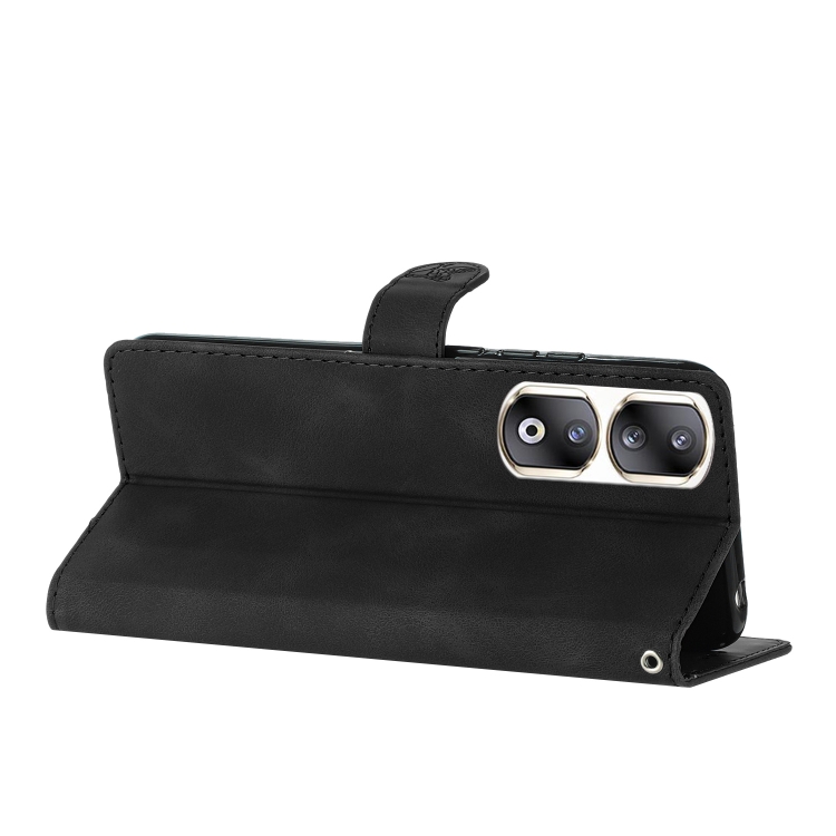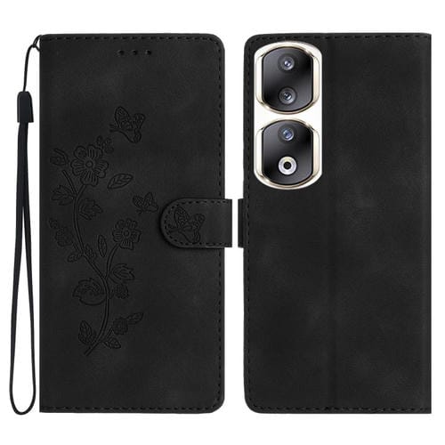 Funda de Cuero para Honor 90 Pro con Estampado de Mariposa y Flores (Negro)