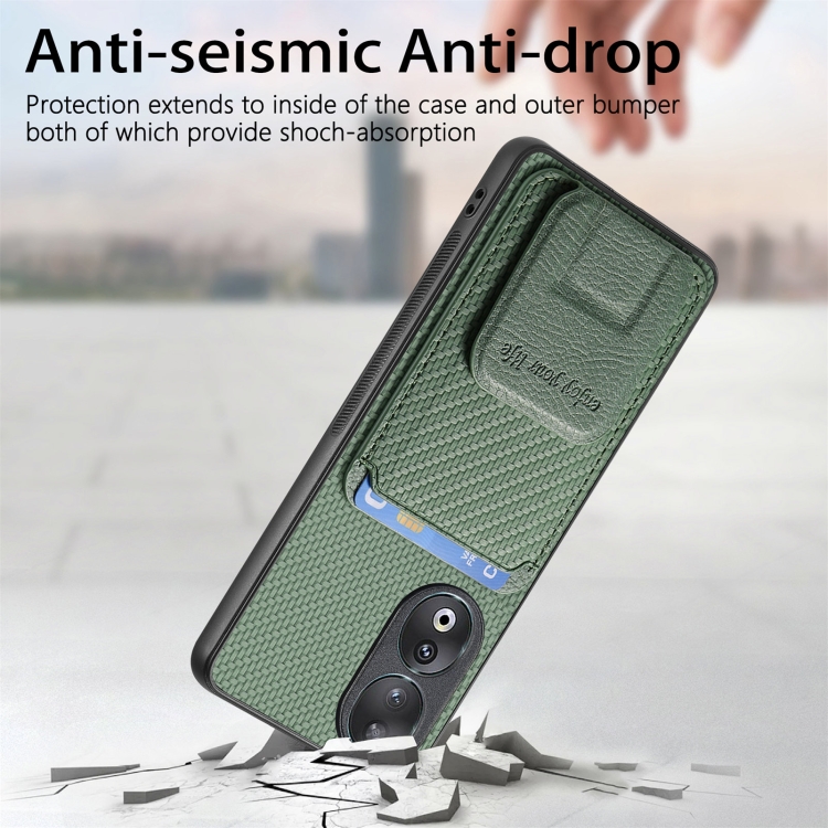 Funda para Honor 90 Pro con Soporte Plegable y Bolsa para Tarjetas de Fibra de Carbono (Verde)