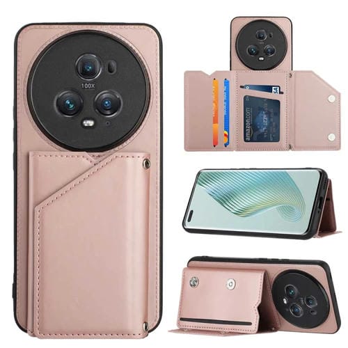 Funda para Honor Magic5 Pro Skin Feel PU + TPU con Ranuras para Tarjetas para PC (Oro Rosa)